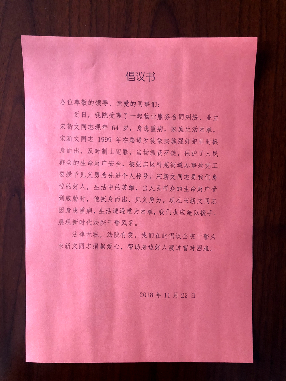 | 好人不应该被遗忘 淄博高新区法院为“特殊当事人”捐款 | |||