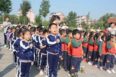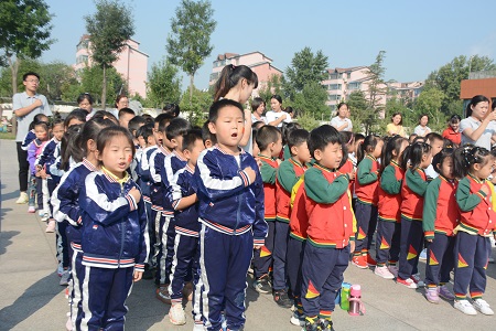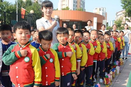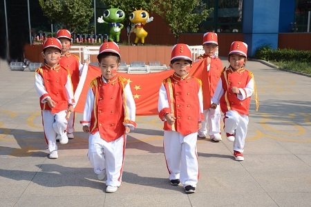 从1949年到2019年,七十年风雨兼程,我们的祖国在发生着翻天覆地的变化,我们在一点一滴中感受着祖国美丽的蜕变。 在中华人民共和国成立70周年这样一个激动人心的时刻,傅山幼儿园园全体师生以自己的方式表达对祖国的深深祝福。 庄严的升旗仪式 嘹亮的国歌声中 五星红旗冉冉升起, 站在庄严的国旗下, 满怀着一份爱国的情怀, 自豪感在心中油然升起 我骄傲,我们是炎黄子孙! 我骄傲,我们是中国人!
