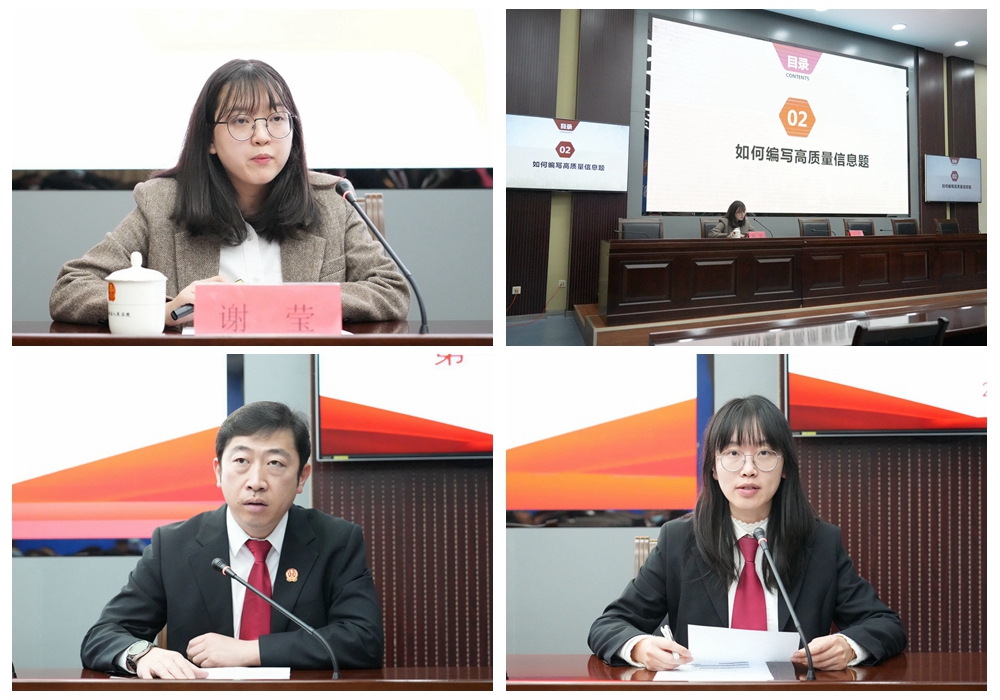 为进一步提升全院宣传调研工作水平,激发全院干警参与宣传调研工作的热情,4月4日,淄博高新区法院召开宣传调研工作推进会,邀请市法院研究室法官助理谢莹进行现场授课。党组成员、副院长房鹏主持会议,党组成员、审委会专职委员王效志参加会议并讲话,各部门(团队)负责人、相关干警参加会议。 会上,市法院研究室法官助理谢莹以如何编写高质量信息为切入点,结合实际内容,为大家详细讲授了信息简报写作要点与相关技巧,并与大家分享了自己的信息工作经验。 随后,淄博高新区法院综合办公室负责人谭杰通报了我院2023年1-3月份案例、信息宣传调研报送及采用情况;综合办公室干警赵昕渝解读了我院《创新经验成果计分实施方案》。 王效志专委对下一步开展宣传调研工作进行了部署,并指出,一是宣传调研工作对法院整体工作具有引领作用,要充分认识到宣传调研工作是展现法院工作实绩、工作亮点的重要途径,是法院树品牌、强素质的重要载体,要将审执工作和宣传调研工作深度融合,推动法院各项工作提质增效。二是加强宣传调研工作的统筹调度,健全宣传数量与质量同步考核机制,建立量化考核、科学合理的奖惩制度,结合考核制度,定期通报宣传调研稿件报送采用情况,充分调动法院干警的工作积极性,营造“比学赶超”的氛围。三是加强业务学习,提升宣传调研工作能力,信息宣传调研工作是全面记录个人成长进步的重要载体,是全面展示个人综合能力的重要渠道,要善于思考、勤于挖掘,提升发现问题和解决问题的能力。四是加强通联工作,发挥资源优势,立足重点工作任务,创新宣传方式,扩大宣传效应,倾听民情民意,拉近与群众的距离,让司法宣传工作有温度、有力度,推动淄博高新区法院宣传调研工作再上新台阶。 房鹏副院长对会议进行总结,并强调,要充分认识到新形势下宣传调研工作的重大意义,进一步强化对宣传调研工作重要性的认识,瞄准“数量”和“质量”两大目标任务,加强精品意识,全面调动、全面发力,形成宣传调研工作合力,进一步完善宣传调研工作的培训学习和激励机制,不断提升淄博高新区法院宣传调研工作水平。 责任编辑:包欣悦 审核人:王效志 | |||