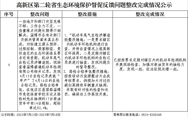 高新区第二轮省生态环境保护督察反馈问题(序号6)整改完成情况公示