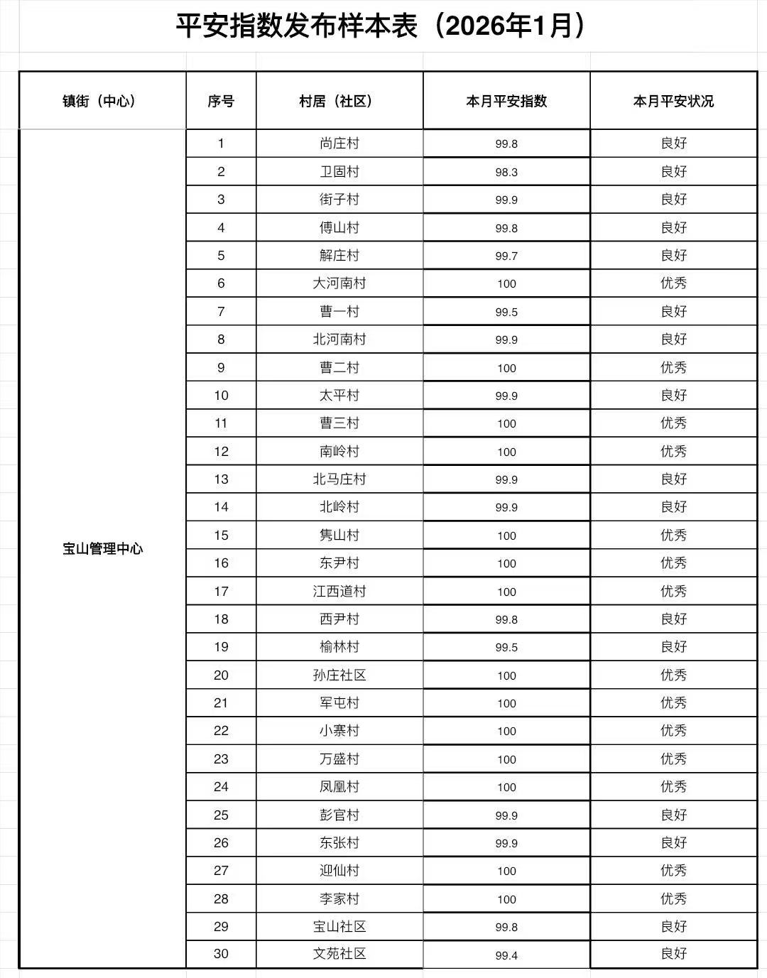 【宝山管理中心】1月份“平安指数”发布