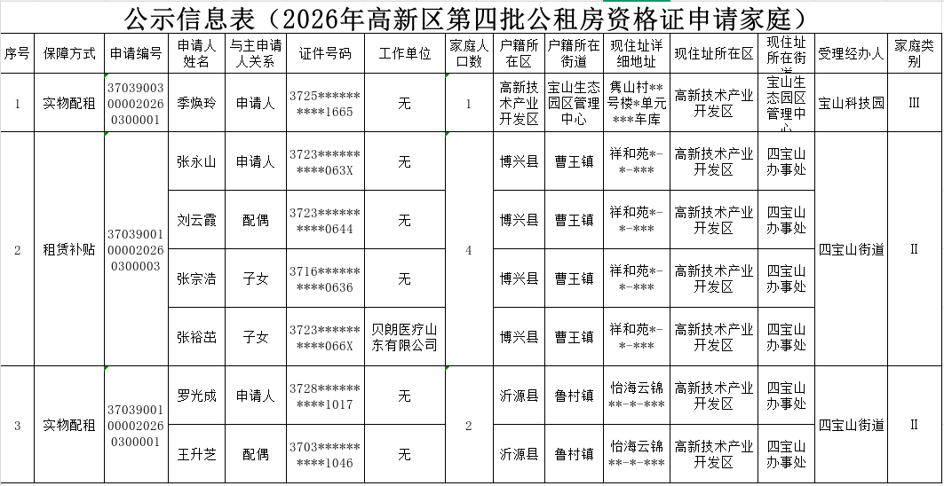 附:2026年高新区第四批公租房资格证申请家庭名单