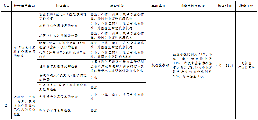 淄博高新区市场监管局2023年度“双随机、一公开”抽查工作计划