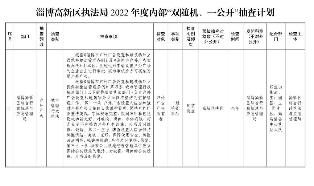 淄博高新区执法局2022年度内部“双随机、一公开”抽查计划.pdf