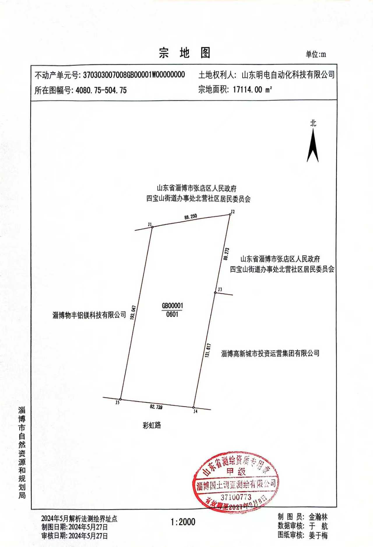 山东明电自动化科技有限公司用地,位于柳泉路以西、青银高速以南、彩虹路以北,拟办理不动产登记手续。我单位已于2025年10月23日向你单位发出《地籍调查出席指界通知书》,但你单位未到现场指界。根据《地籍调查规程》,按违约缺席指界的规定处理,现将上述地块宗地权属界线定界结果(详见宗地图)予以公告。该宗地J1-J3为违约缺席指界的界线,如对该结果有异议,请在收到本通知后十五日内提出重新划界申请,并承担重新划界的费用,逾期不申请,公告期满定界结果自动生效。